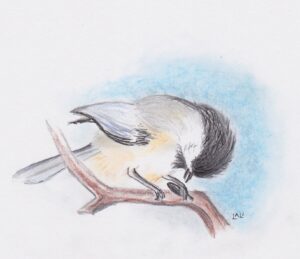 Some days the most exciting thing that happens around here is that a chickadee takes a bath. A bathing chickadee is a cheerful sight. After checking carefully for owls and